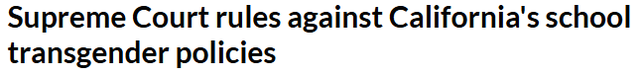 美国最高法院紧急叫停加州学校跨性别政策:不得向家长隐瞒学生跨性别身份