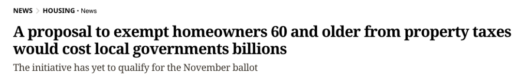 重磅:60岁以上免缴房产税?!加州或一年少收$200亿